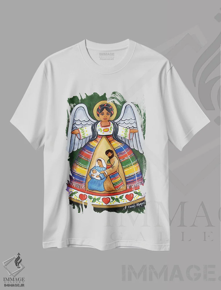 تیشرت سفید طرح دار فرشته تولد مسیح، هنر فاخر معاصر اثر کندی مایر | فروشگاه ایماژ تیشرت طرح دار فرشته تولد مسیح اثر کندی مایر