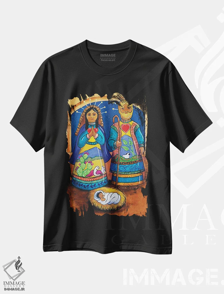 تیشرت مشکی طرح دار خانواده مقدس، تزئینی اثر کندی مایر | فروشگاه ایماژ تیشرت طرح دار خانواده مقدس اثر کندی مایر