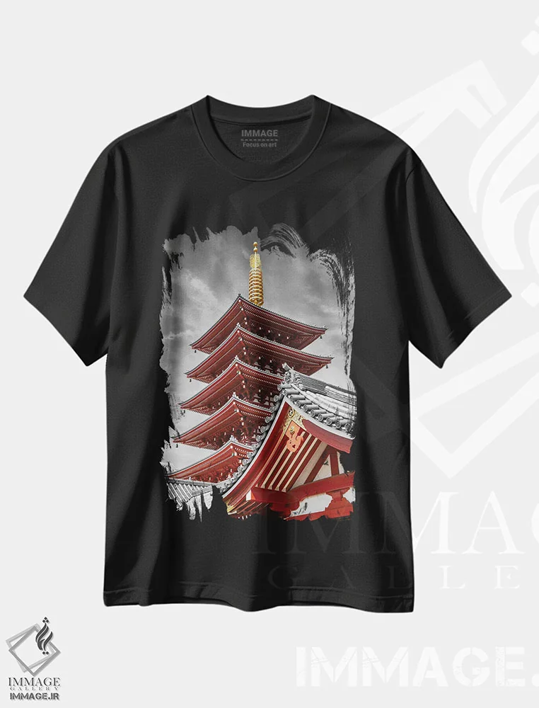 تیشرت مشکی طرح دار – تیشرت معماری ,پاگودای زیبای معبد سنسو-جی در توکیو اثر ملانی ویولا فروشگاه ایماژ تیشرت طرح معماری ,پاگودای زیبای معبد سنسو-جی در توکیو اثر ملانی ویولا