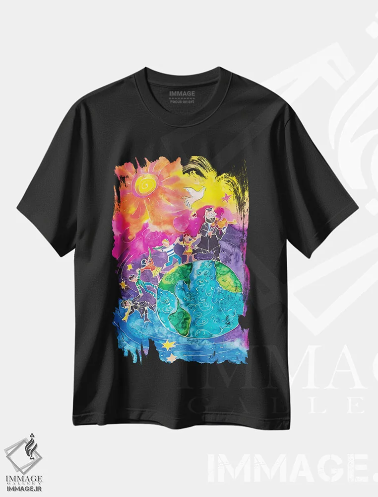تیشرت مشکی طرح دار – تیشرت معنوی ,صلح در سراسر جهان اثر میشل پالور فلدمن فروشگاه ایماژ تیشرت طرح معنوی ,صلح در سراسر جهان اثر میشل پالور فلدمن