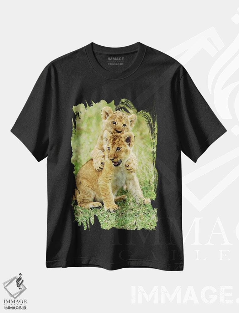 تیشرت طرح دار آثار آدام جونز - immage.ir تیشرت طرح دار دو توله شیر در حال بازی، منطقه حفاظت شده ماسایی مارا، کنیا اثر آدام جونز