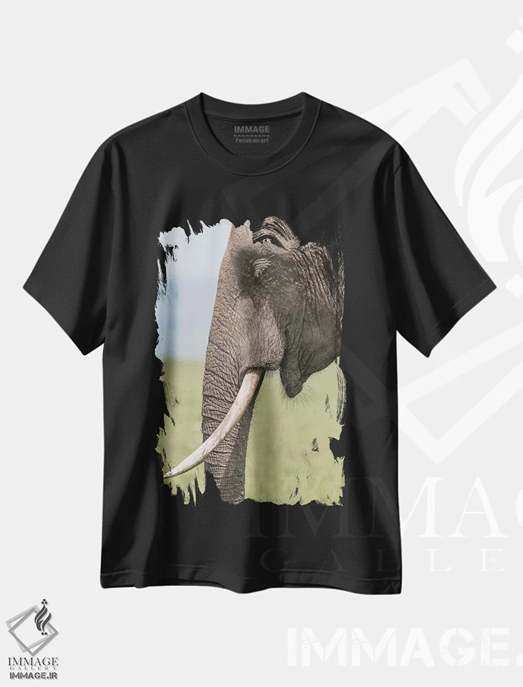 تیشرت مشکی طرح دار آثار جینز گالری - immage.ir تیشرت طرح دار Kenya, Maasai Mara National Reserve. Close-up of elephant head.,آفریقا، کنیا، ذخیره گاه ملی ماسایی مارا. نمای نزدیک سر فیل اثر جینز گالری
