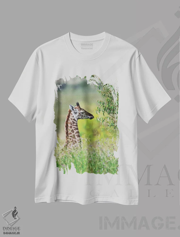 تیشرت سفید طرح دار آثار کرن سو - immage.ir تیشرت طرح دار Maasai Mara National Reserve, Kenya,زرافه بچه، پارک ملی ماسایی مارا، کنیا اثر کرن سو