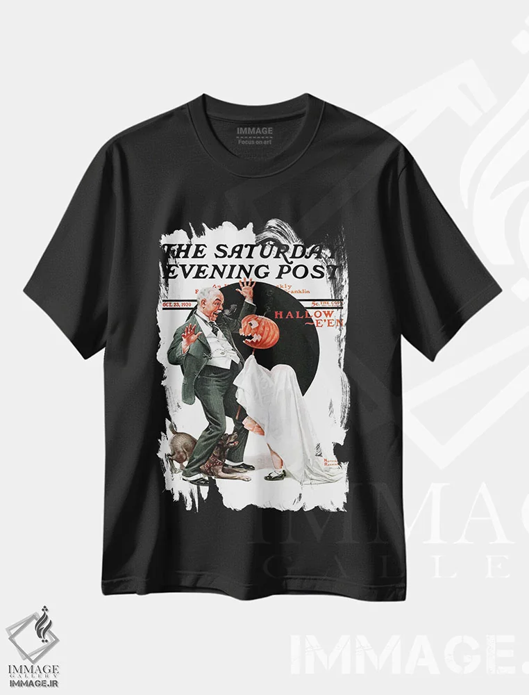 تیشرت مشکی طرح دار هالووین، هنر فاخر کلاسیک اثر نورمن راکول | فروشگاه ایماژ