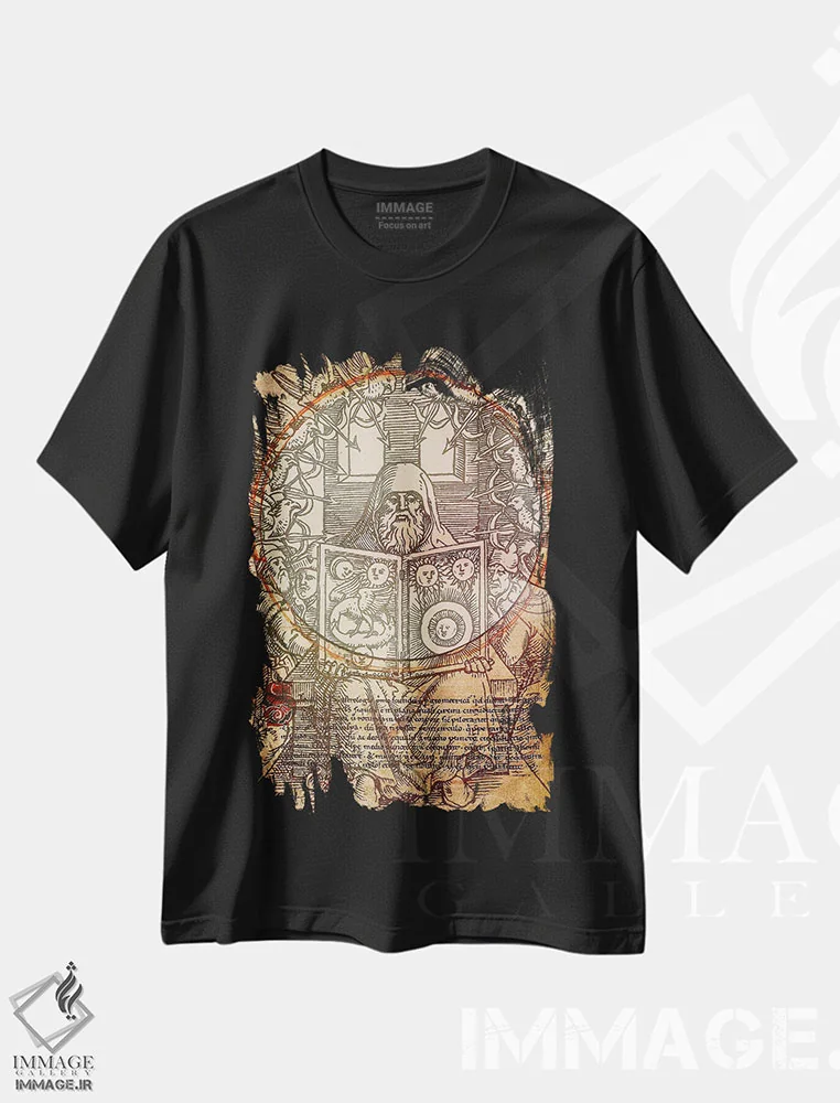 تیشرت مشکی طرح دار کتاب کیمیاگری، هنر دیجیتال اثر فایو بای فایو کالکتیو | فروشگاه ایماژ