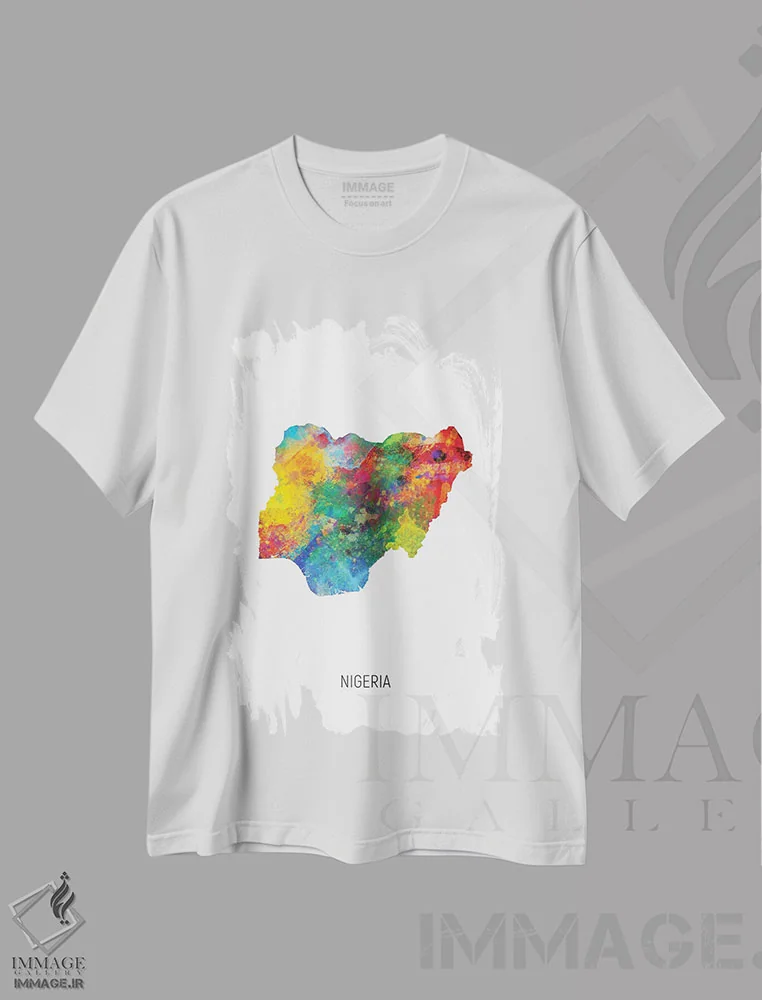 تیشرت سفید طرح دار – تیشرت هنری ,نقشه نیجریه اثر مایکل تامپست فروشگاه ایماژ