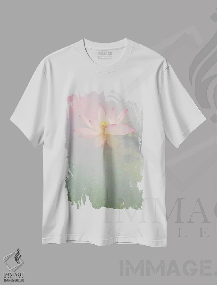 تیشرت سفید طرح دار "گل نیلوفر"، دکوراسیون جایگزین اثر اکسانا لازاری | فروشگاه ایماژ