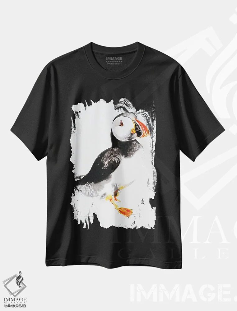 تیشرت مشکی طرح دار – تیشرت حیوانات ,پافین پرجنب وجوش اثر مندی هک فروشگاه ایماژ