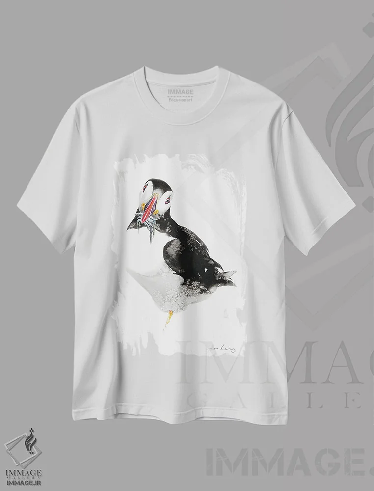 تیشرت سفید طرح دار پافین، تزئینی اثر هنر و طراحی KAK | فروشگاه ایماژ