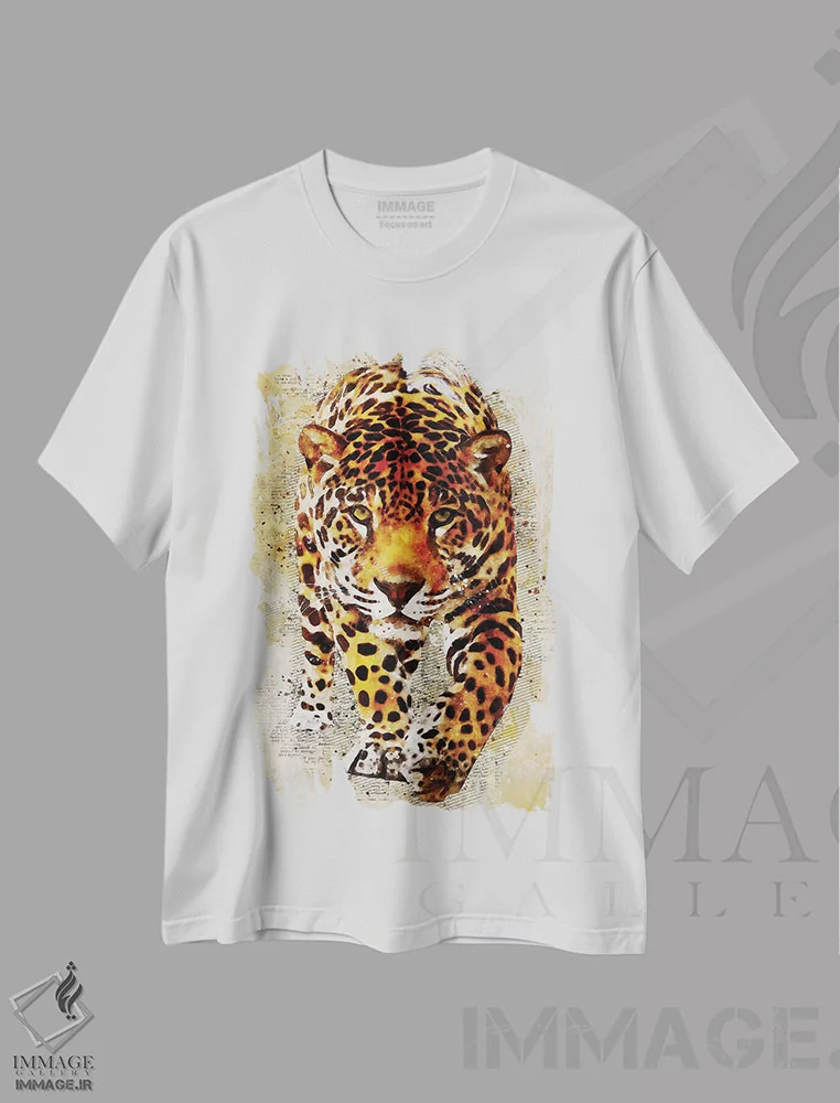 تیشرت سفید طرح دار پلنگ، هنر دیجیتال اثر دورو آرت | فروشگاه ایماژ