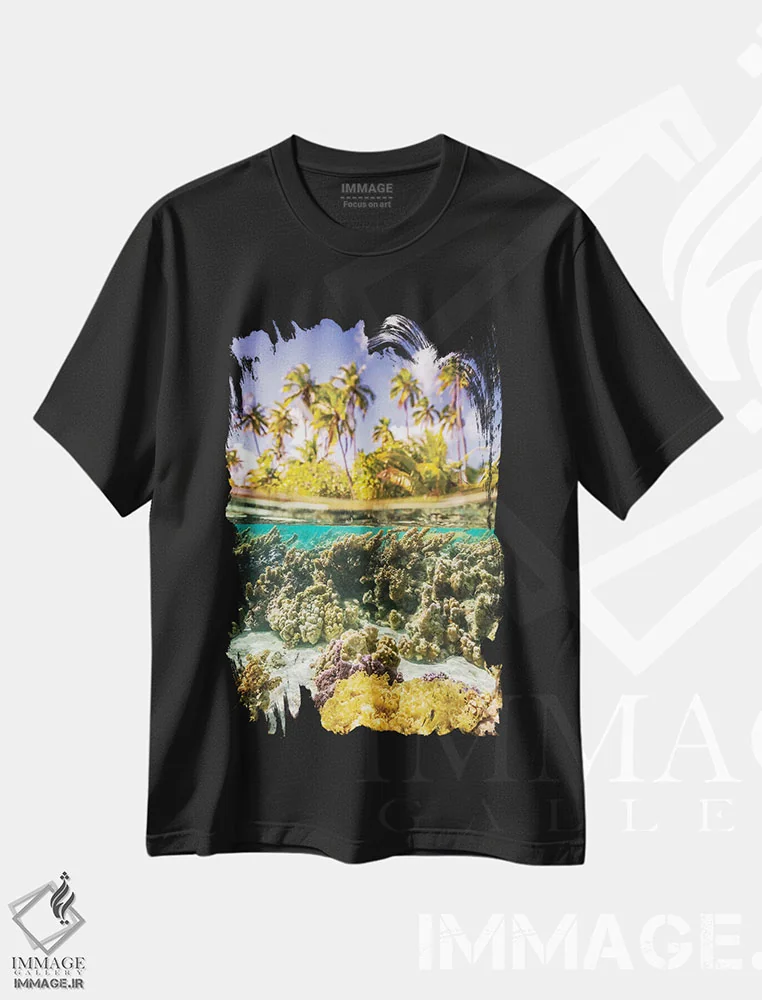 تیشرت طرح دار Taha'a Under/Above Water Split Of Coral And Palm Trees,ترکیب زیر و بالای آب از مرجان و درختان نخل اثر جینز گالری