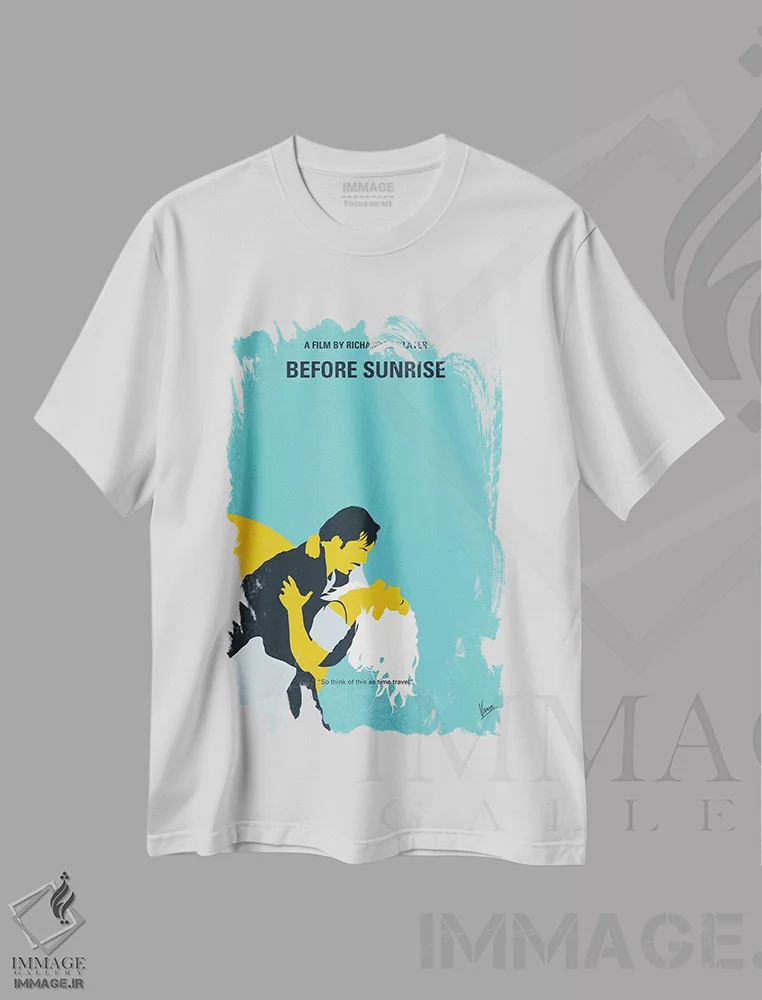 تیشرت سفید طرح دار پوستر مینیمال فیلم پیش از طلوع، هنر دیجیتال اثر چانکونگ | فروشگاه ایماژ تیشرت طرح دار پوستر مینیمال فیلم پیش از طلوع اثر چانکونگ