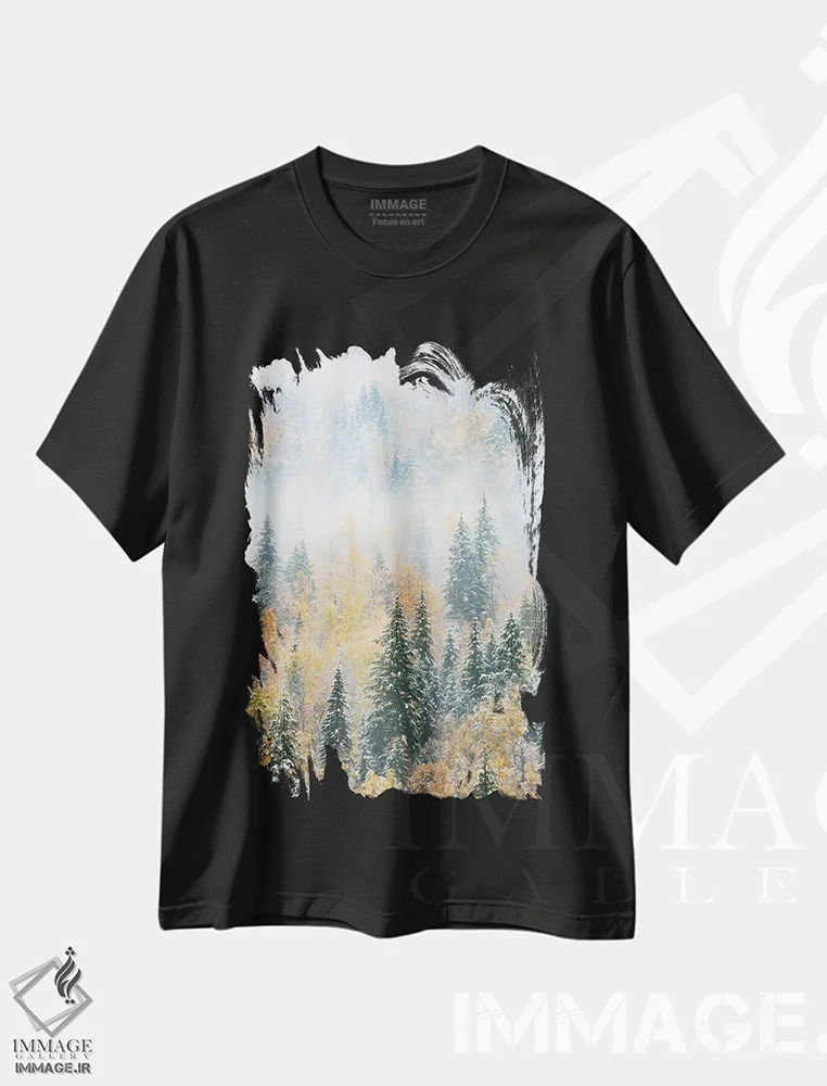 تیشرت مشکی طرح دار دریاچه هرچرت ابری، مدیوم اثر برایان ولف | فروشگاه ایماژ