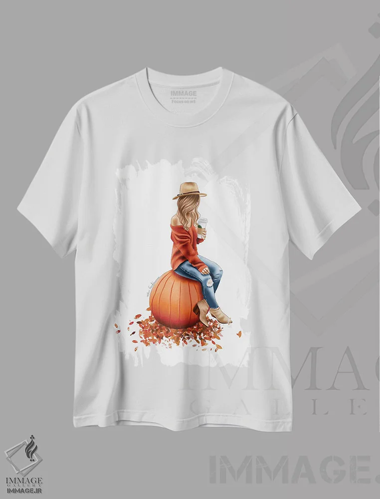 تیشرت سفید طرح دار – تیشرت پاییزی ,کدوی خوشحال پاییزی اثر آنی لاپوینت فروشگاه ایماژ