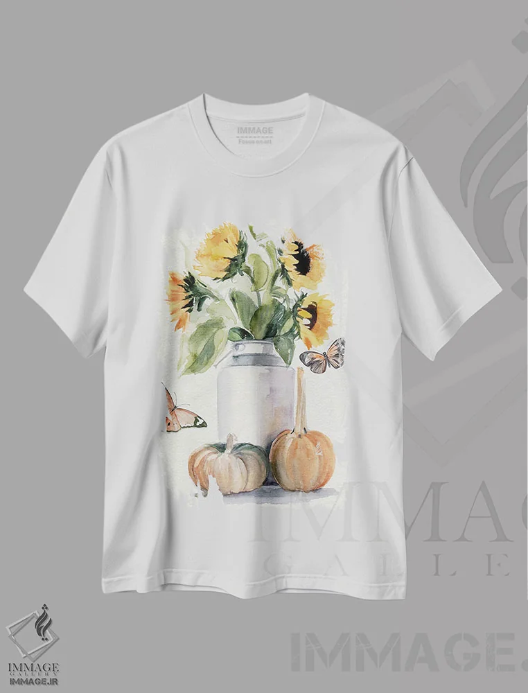 تیشرت طرح دار دسته گل کدو تنبل، دکور روستایی اثر اشلی بردلی | فروشگاه ایماژ