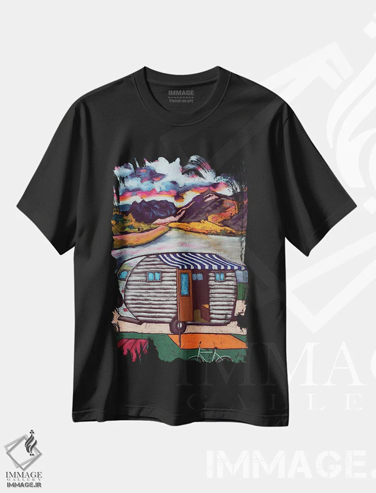 تیشرت مشکی طرح دار کمپینگ، دکوراسیون جایگزین اثر دوریانا پوپا | فروشگاه ایماژ