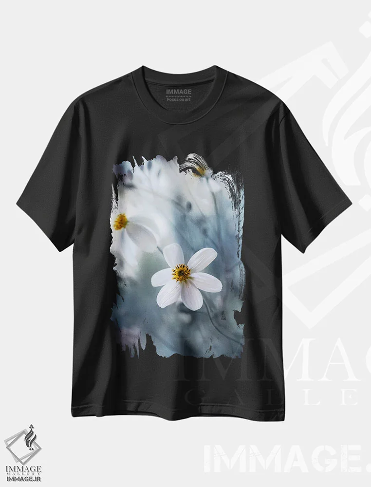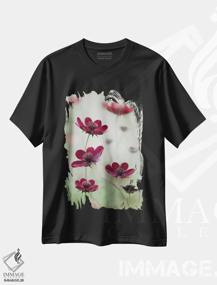 تیشرت طرح گلدار ,کاسموس آبی اثر مندی دیشر