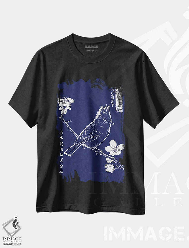 تیشرت طرح دار گنجشک تاج دار بر شاخه ای در ژاپن، هنر دیجیتال اثر آلبرتو پرز | فروشگاه ایماژ