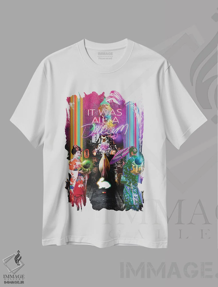 تیشرت سفید طرح دار همه اش یک رؤیا بود، دکور آسیایی اثر دیوید لوبلاو | فروشگاه ایماژ