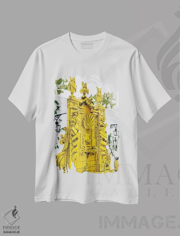 تیشرت سفید طرح دار چراغ های بارانی، تزئینی اثر کاتارینا والِوا | فروشگاه ایماژ تیشرت طرح دار چراغ های بارانی اثر کاتارینا والِوا