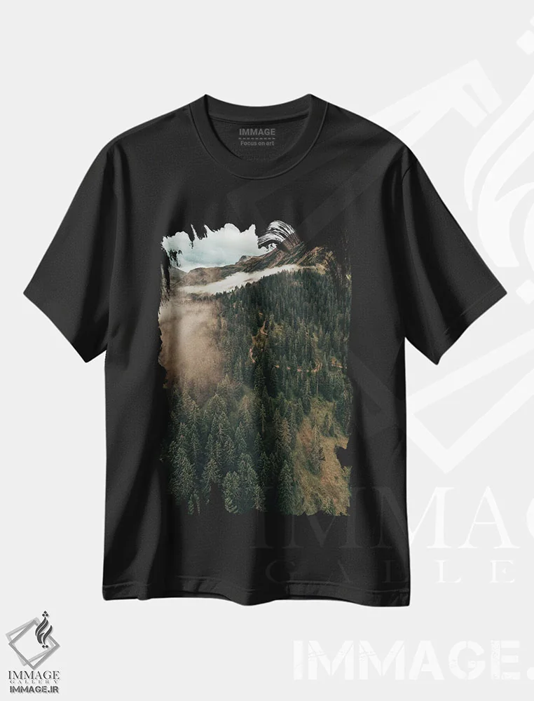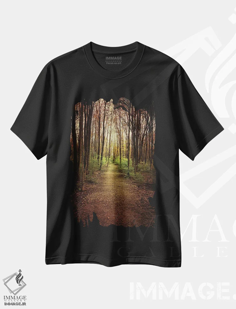تیشرت مشکی طرح دار – تیشرت طبیعت ,مسیر جنگل اثر مارگو کو فروشگاه ایماژ