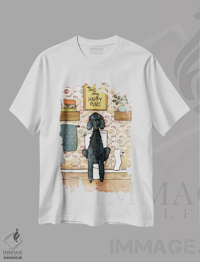 تیشرت سفید طرح دار – تیشرت پودل ,جای شاد پودل اثر جیمی موراث فروشگاه ایماژ تیشرت طرح پودل ,جای شاد پودل اثر جیمی موراث
