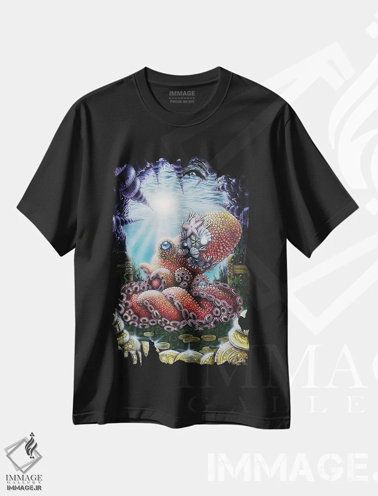 تیشرت مشکی طرح دار اختاپوس آگورا، هنر فاخر معاصر اثر دکوتا دیت ویلر | فروشگاه ایماژ تیشرت طرح دار اختاپوس آگورا اثر دکوتا دیت ویلر