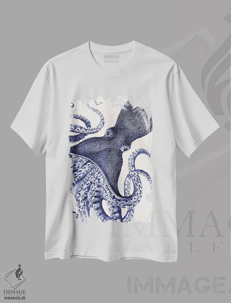 تیشرت سفید طرح دار اختاپوس، تزئینی اثر کتی لیپسکامب | فروشگاه ایماژ تیشرت طرح دار اختاپوس اثر کتی لیپسکامب