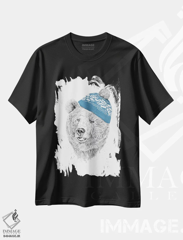 تیشرت مشکی طرح دار خرس استیم پانک، دکوراسیون جایگزین اثر این د فریم شاپ | فروشگاه ایماژ