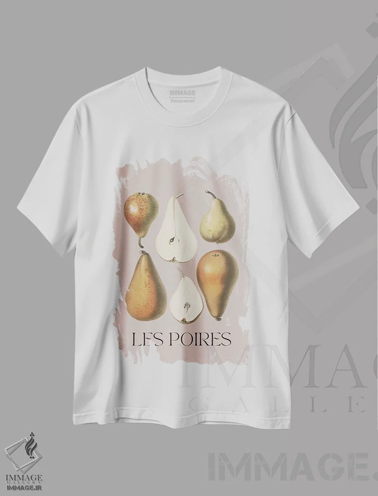 تیشرت سفید طرح دار گلابی ها، تزئینی اثر فلاور لاو چایلد | فروشگاه ایماژ تیشرت طرح دار گلابی ها اثر فلاور لاو چایلد