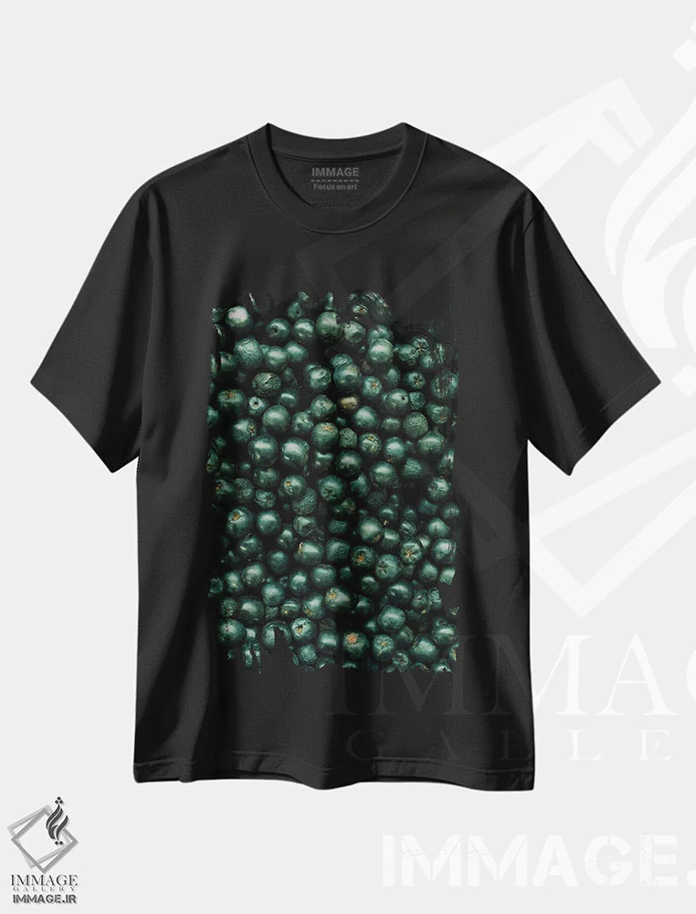 تیشرت مشکی طرح دار توت های آبی، دکور معاصر اثر پل لدنت | فروشگاه ایماژ تیشرت طرح دار توت های آبی اثر پل لدنت