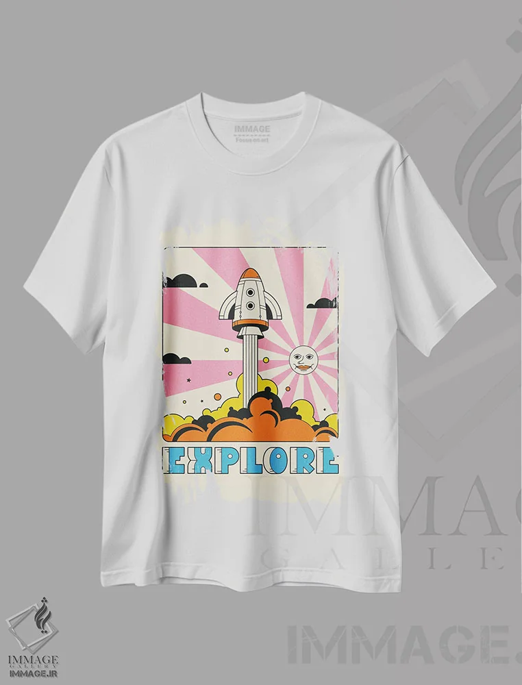تیشرت سفید طرح دار کاوش II، تزئینی اثر جازبری بلو | فروشگاه ایماژ تیشرت طرح دار کاوش II اثر جازبری بلو