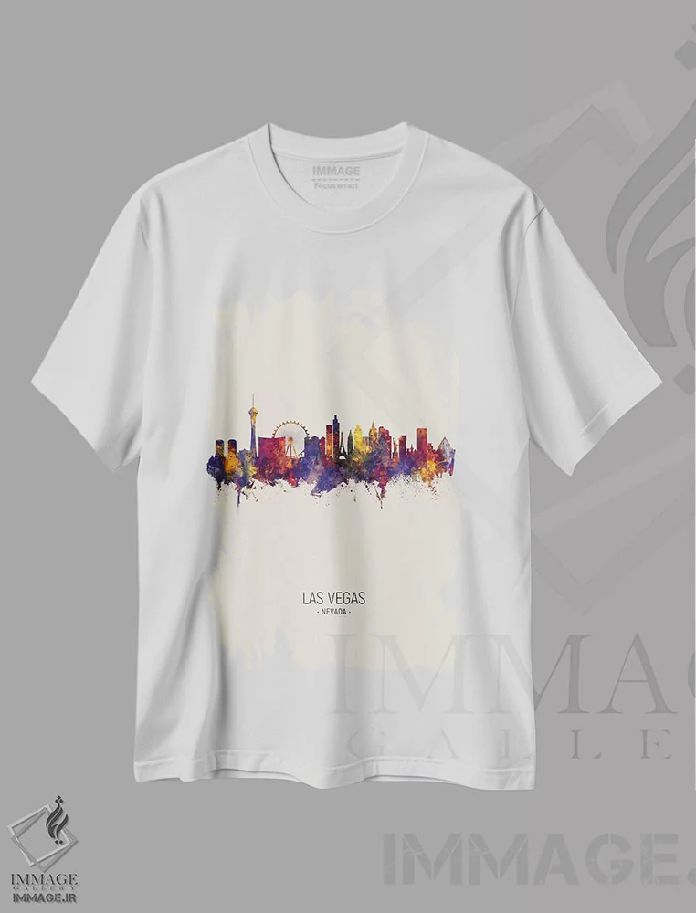 تیشرت سفید طرح دار – تیشرت شهری ,خط افق لاس وگاس نوادا در پاییز اثر مایکل تامپست فروشگاه ایماژ تیشرت طرح شهری ,خط افق لاس وگاس نوادا در پاییز اثر مایکل تامپست
