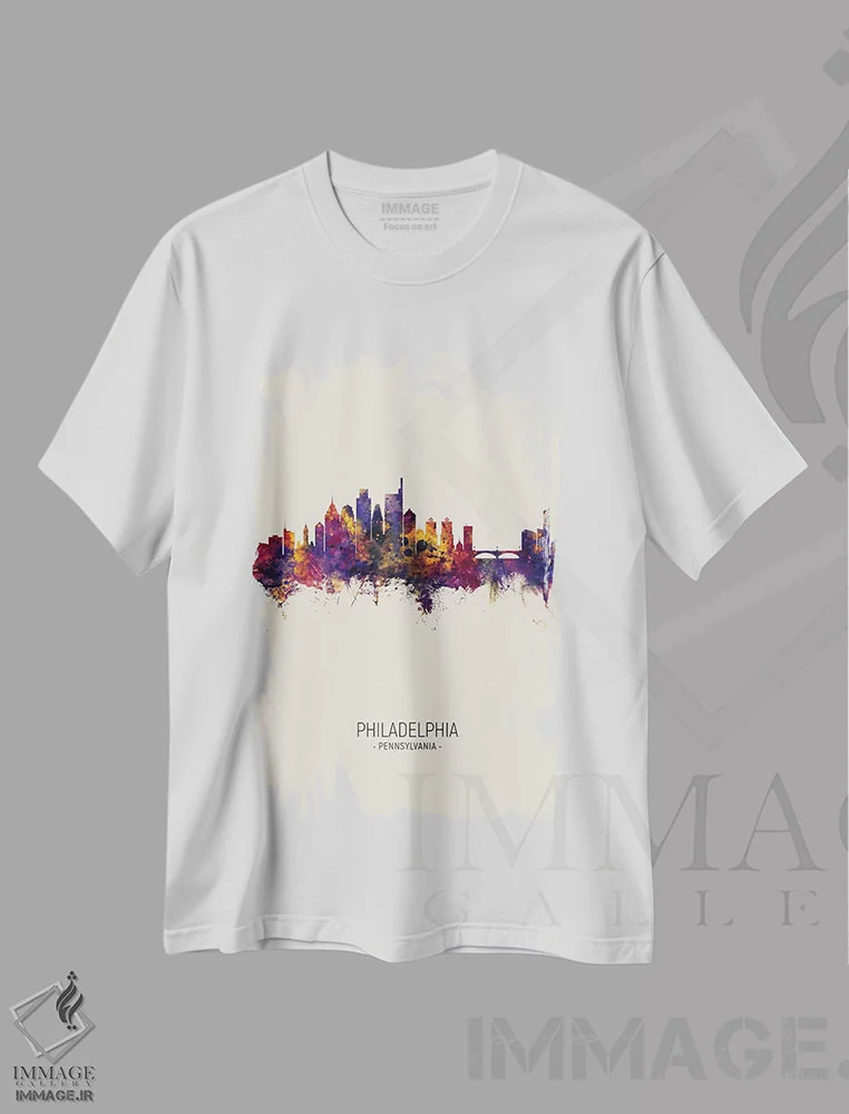 تیشرت سفید طرح دار – تیشرت هنری ,خط افق فیلادلفیا پنسیلوانیا در پاییز اثر مایکل تامپست فروشگاه ایماژ تیشرت طرح هنری ,خط افق فیلادلفیا پنسیلوانیا در پاییز اثر مایکل تامپست