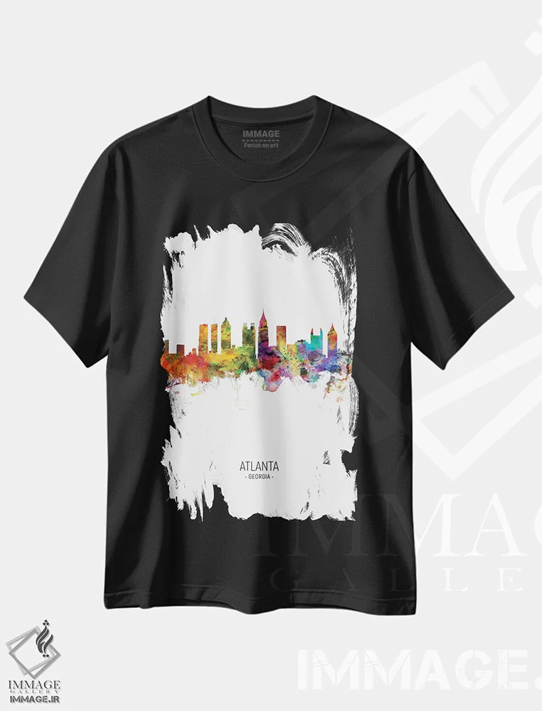 تیشرت مشکی طرح دار – تیشرت سفر ,منظرهٔ پرتره آتلانتا جورجیا اثر مایکل تامپست فروشگاه ایماژ تیشرت طرح سفر ,منظرهٔ پرتره آتلانتا جورجیا اثر مایکل تامپست