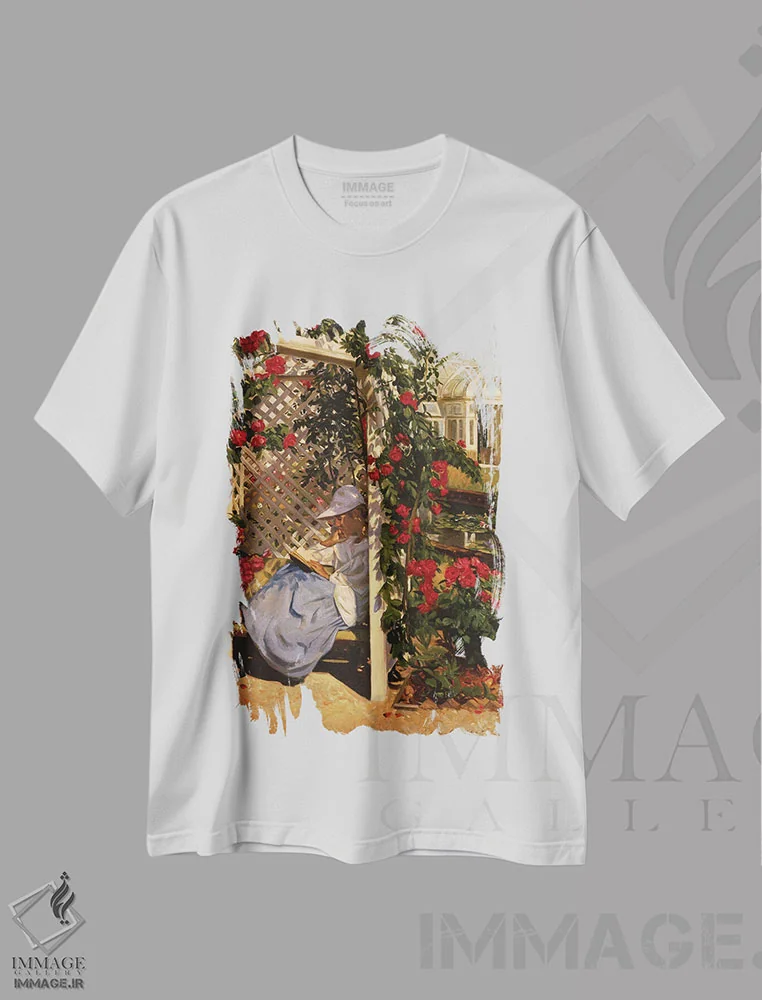 تیشرت سفید طرح دار باغ رز، هنر فاخر معاصر اثر ایوان ویلسون | فروشگاه ایماژ تیشرت طرح دار باغ رز اثر ایوان ویلسون