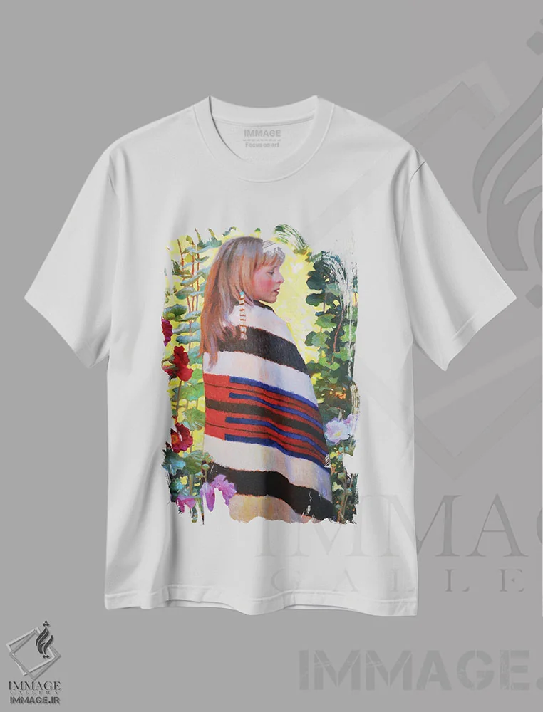 تیشرت سفید طرح دار بهار، هنر فاخر معاصر اثر اوگنیا سارِه | فروشگاه ایماژ تیشرت طرح دار بهار اثر اوگنیا سارِه