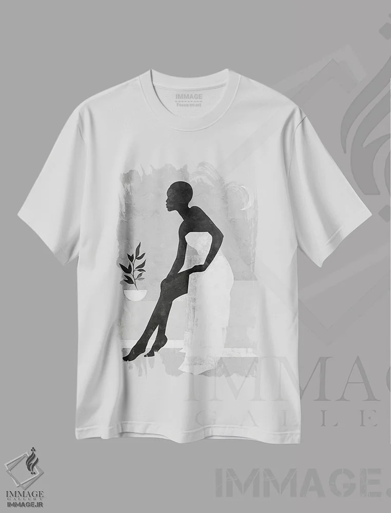 تیشرت سفید طرح دار – تیشرت گرافیکی مدرن ,زن دودویی اثر آدوبی مایداز مکین دی فروشگاه ایماژ تیشرت طرح گرافیکی مدرن ,زن دودویی اثر آدوبی مایداز مکین دی