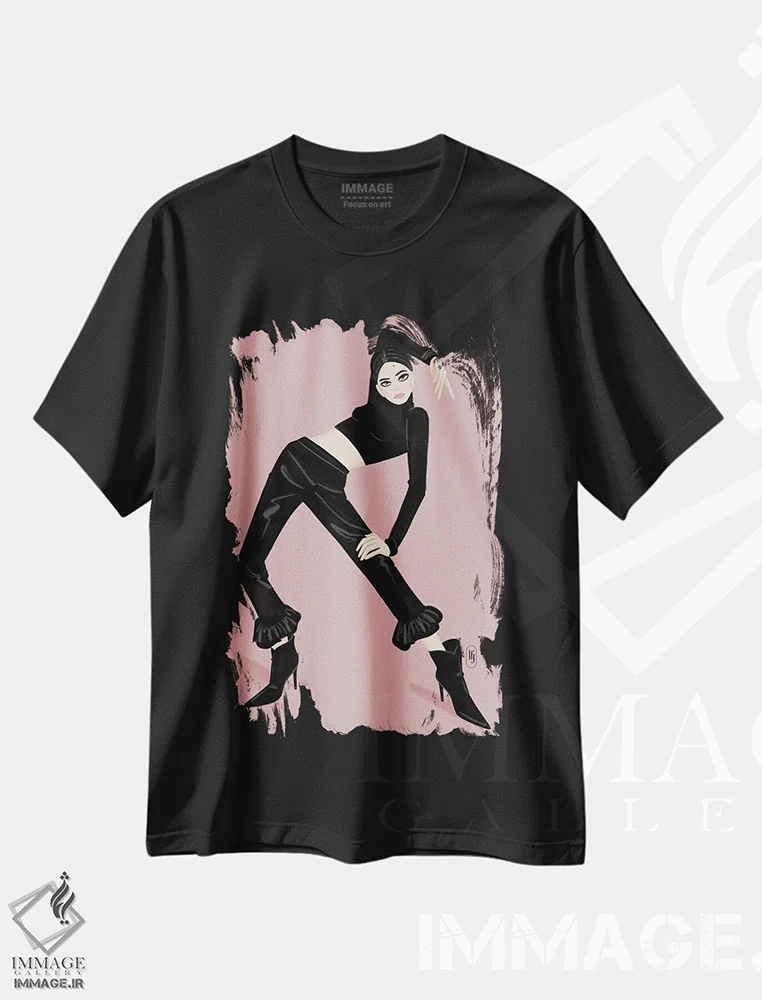 تیشرت مشکی طرح دار ژست بگیر، تزئینی اثر لا فَم ژوژو | فروشگاه ایماژ تیشرت طرح دار ژست بگیر اثر لا فَم ژوژو