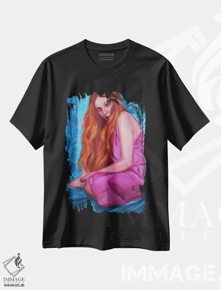 تیشرت مشکی طرح دار تصویر دختر قرمز مو، دکور معاصر اثر جین لانتسمن | فروشگاه ایماژ تیشرت طرح دار تصویر دختر قرمز مو اثر جین لانتسمن