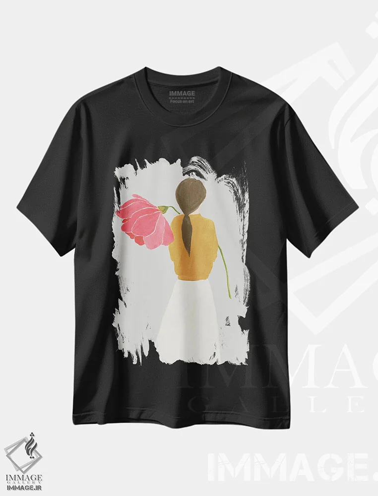 تیشرت مشکی طرح دار – تیشرت هنری ,زن گلی I اثر لیلی کِی فروشگاه ایماژ تیشرت طرح هنری ,زن گلی I اثر لیلی کِی