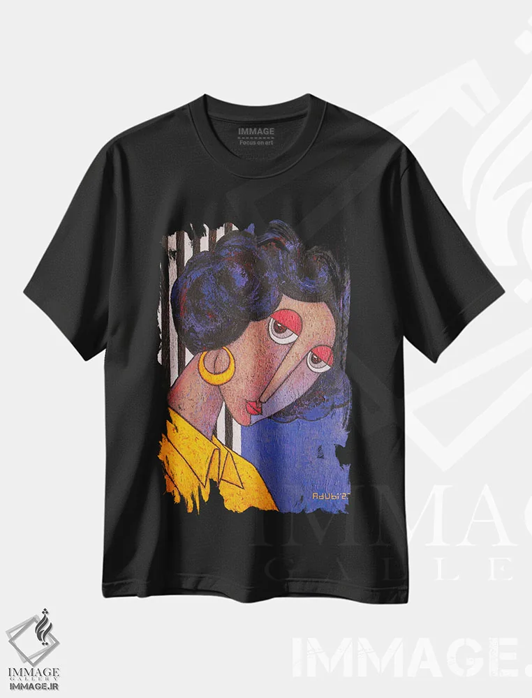 تیشرت سفید طرح دار – تیشرت زنانه هنری ,زن انتزاعی اثر مامبو آرت استودیو فروشگاه ایماژ تیشرت طرح زنانه هنری ,زن انتزاعی اثر مامبو آرت استودیو