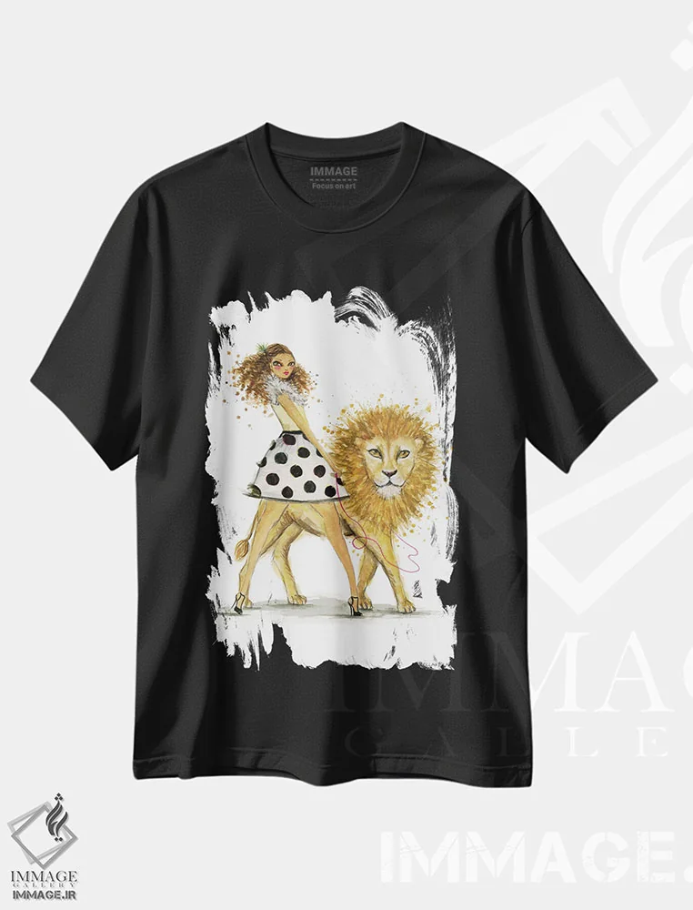 تیشرت مشکی طرح دار اسد، دست نقاشی و طراحی دستی اثر بلا پیلار | فروشگاه ایماژ تیشرت طرح دار اسد اثر بلا پیلار
