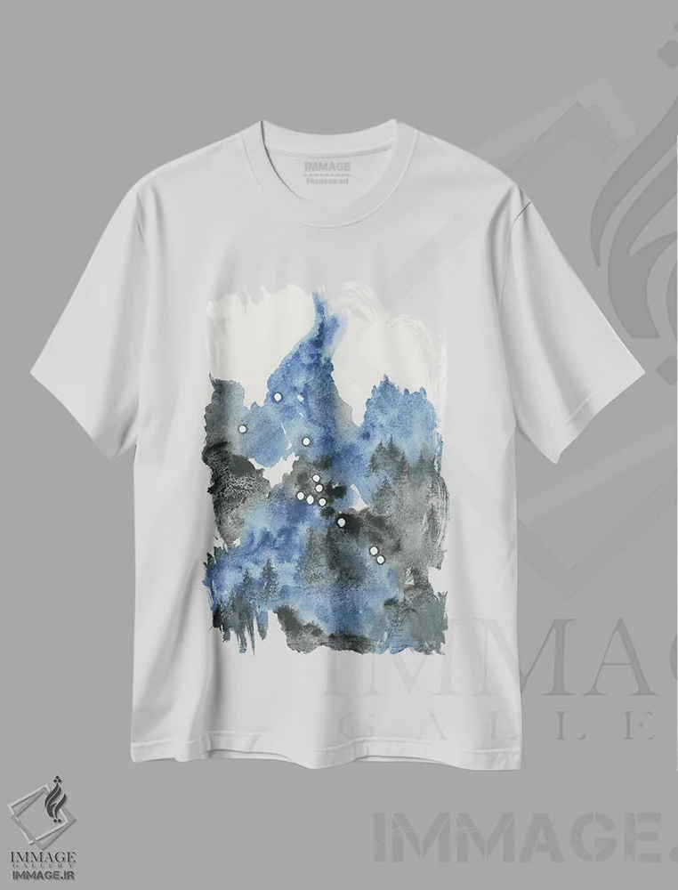 تیشرت سفید طرح دار ثور، آبستره اثر امیلی ماگون | فروشگاه ایماژ تیشرت طرح دار ثور اثر امیلی ماگون