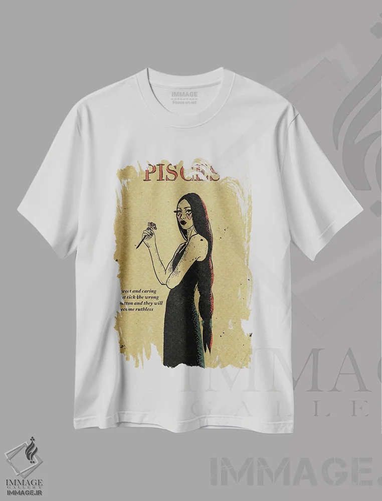 تیشرت سفید طرح دار برج حوت، هنر دیجیتال اثر جانکول آرت | فروشگاه ایماژ تیشرت طرح دار برج حوت اثر جانکول آرت