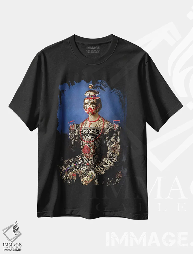 تیشرت مشکی طرح دار پژمردن، دکوراسیون جایگزین اثر اولیور پوچیک | فروشگاه ایماژ