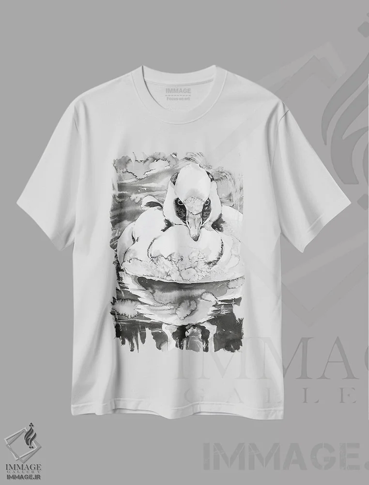 تیشرت سفید طرح دار موجود تالاب سیاه، هنر فاخر معاصر اثر دیینزو | فروشگاه ایماژ تیشرت طرح دار موجود تالاب سیاه اثر دیینزو
