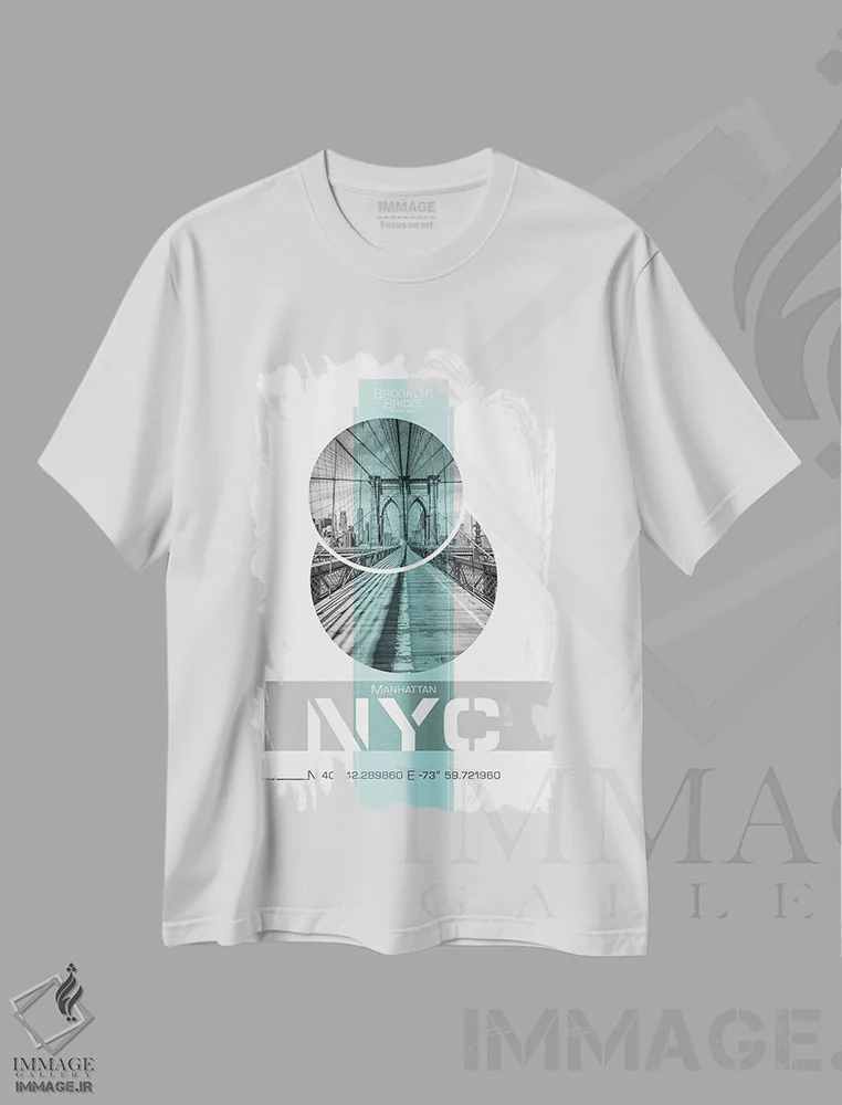 تیشرت سفید طرح دار – تیشرت شهری ,مختصات پل بروکلین نیویورک اثر ملانی ویولا فروشگاه ایماژ تیشرت طرح شهری ,مختصات پل بروکلین نیویورک اثر ملانی ویولا