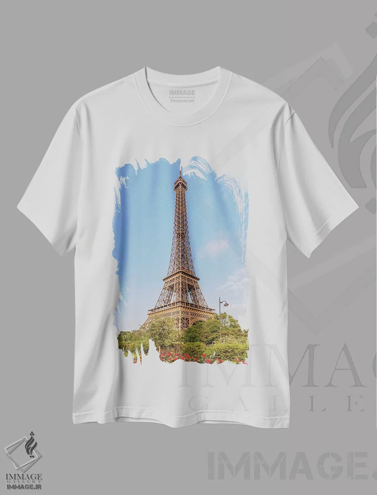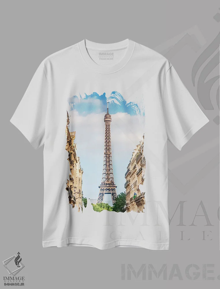 تیشرت سفید طرح دار – تیشرت شهری ,نمای پاریس اثر ملانی ویولا فروشگاه ایماژ تیشرت طرح شهری ,نمای پاریس اثر ملانی ویولا