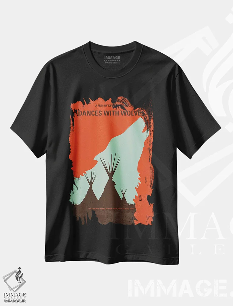 تیشرت مشکی طرح دار پوستر مینیمال فیلم رقصنده با گرگ ها اثر چانکونگ | فروشگاه ایماژ تیشرت طرح دار پوستر مینیمال فیلم رقصنده با گرگ ها اثر چانکونگ